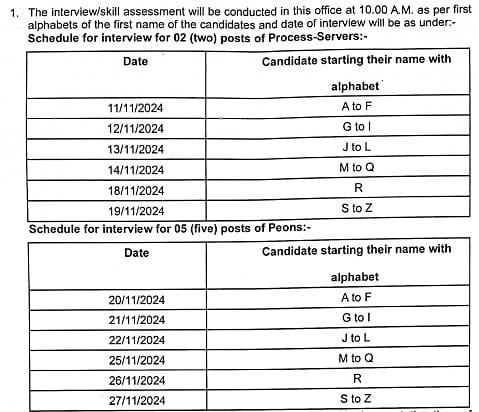 The Interview for posts of Peon, Process Server