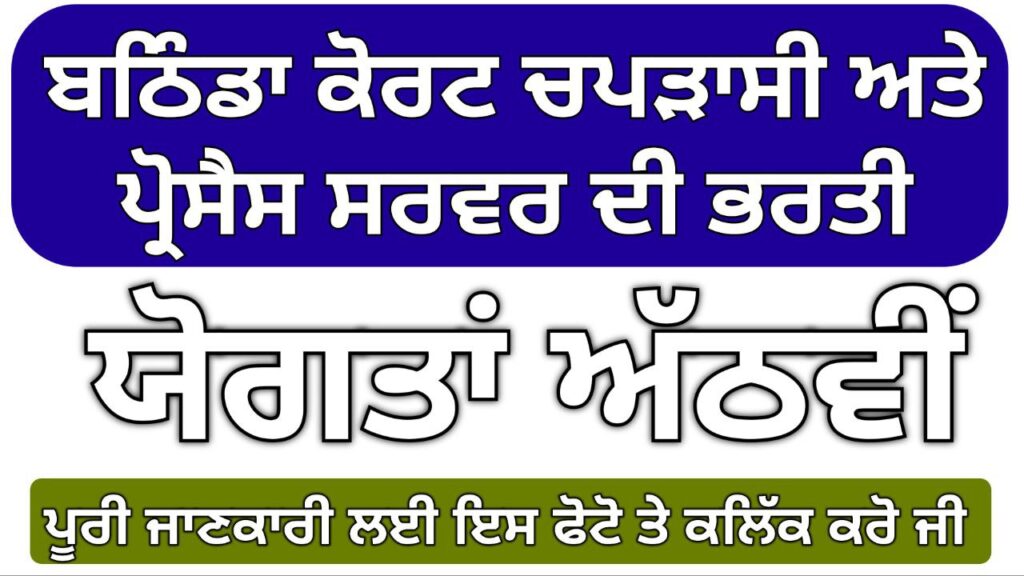 Bathinda Court Peon Process Server Vacancy 2024