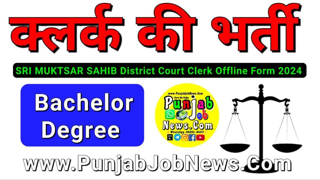 SRI MUKTSAR SAHIB District Court Clerk Offline Form 2024 District Court Clerk Recruitment 2024 Office of the District & Session judge, SRI MUKTSAR SAHIB Clerk Vacancy 2024 Employment Notice Number 01 of 2024 IMPORTANT DATES Form Start Date 04/01/2024 Last Date 19/01/2024 Exam Date Available Soon WhatsApp Channel LinK Click Here APPLICATION FEE: For