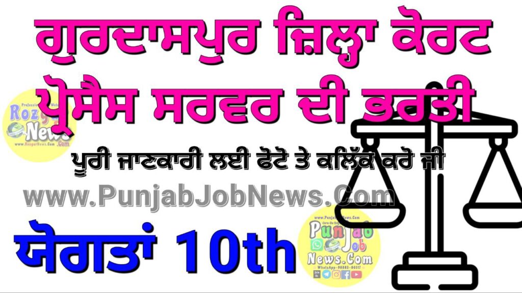 Short Information : Gurdaspur District Court Recruitment 2024: Gurdaspur Court has issued the latest notification for the recruitment of Process Server at 07 posts. Interested candidates can apply by 25/01/2024. Other details of Gurdaspur Court Recruitment 2024, Gurdaspur Court Process Server Recruitment 2024, Gurdaspur Court Process Server Recruitment 2024 Like Age Limit, Educational Qualification,