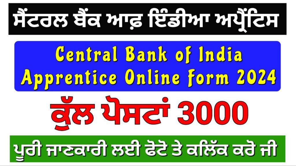 Central Bank of India Apprentice Online Form 2024Central Bank of India (CBI)Central Bank of India CBI Apprentice Recruitment 2024CBI Apprentices 2024 : Short Details of Notification