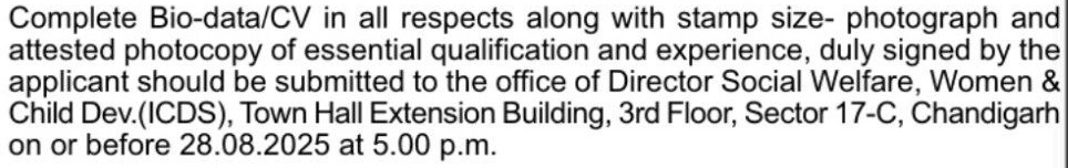Chandigarh Anganwadi chdsw Recruitment 2025