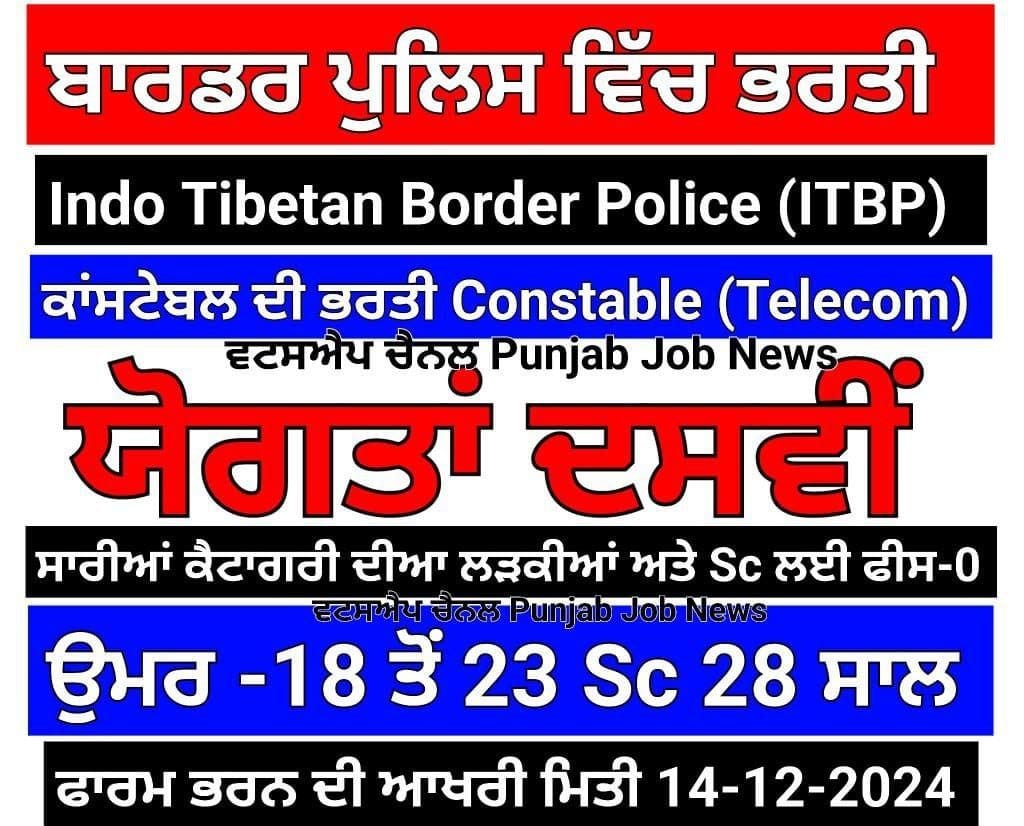Indo-Tibetan Border Police (ITBP)ITBP Telecom SI, Constable Recruitment 2024 |