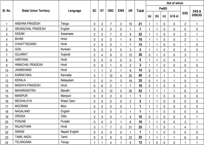 State / Category Wise Vacancies |