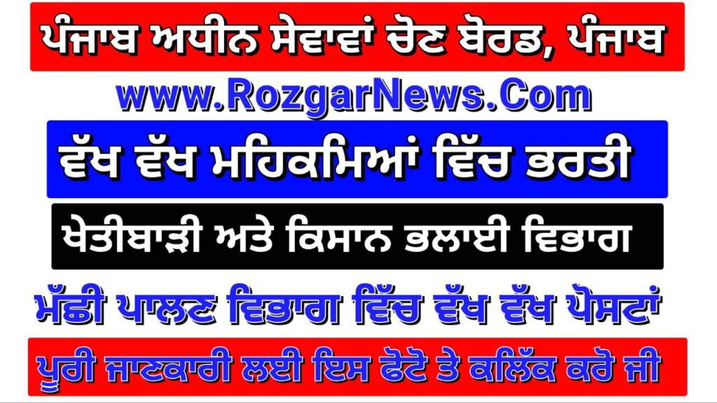 Punjab Subordinate Services Selection Board, PunjabFisheries Skilled,Accountant,Lab Technician 10 Various Recruitment 2024Advt No. : 06/2024 Short Details of Notificationwww.RozgarNews.Com