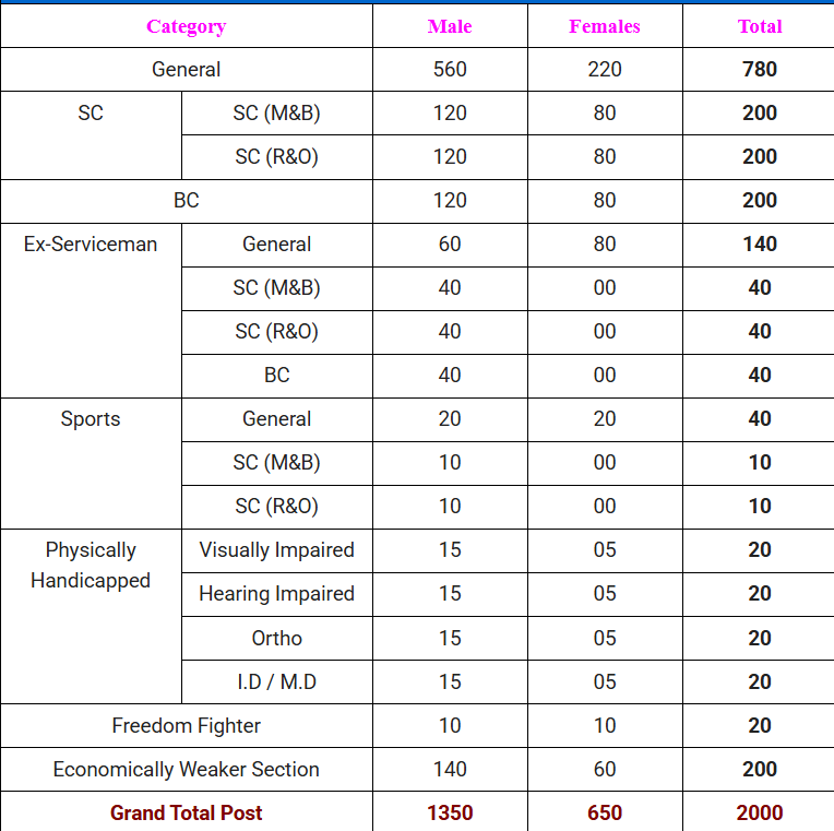 | Post Name | Gender | Total | Qualification | |||||||||||