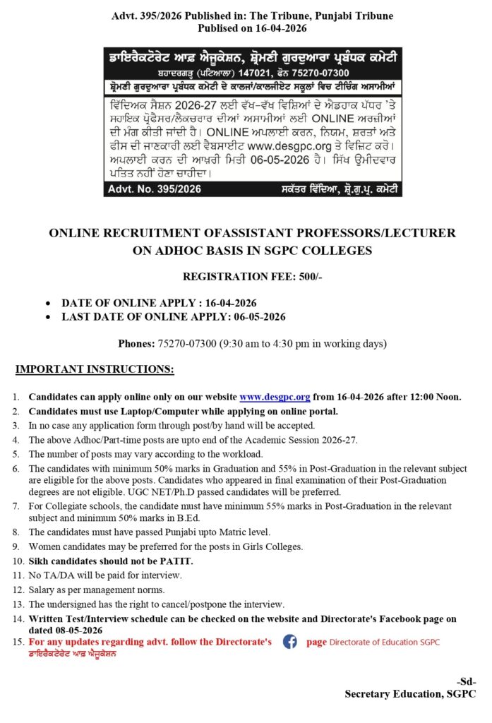 The Shiromani Gurdwara Parbandhak Committee (SGPC) is a significant entity that plays a crucial role in the management of Gurudwaras in India. One of its essential functions includes recruitment for various educational positions. The upcoming SGPC Patiala recruitment for 2026 focuses on enhancing the educational framework within the region by recruiting qualified individuals to fulfill various roles in its educational institutions.